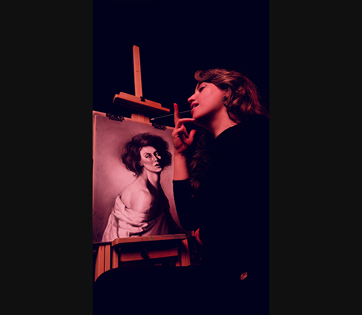 is a multidisciplinary visual artist and educator whose practice spans painting, drawing, Arabic ornament art, embroidery, and mixed media. Born in Madrid, raised in Syria, and now based in Kitchener, Ontario, she holds a Bachelor’s in Fine Arts (2006, Damascus University).
